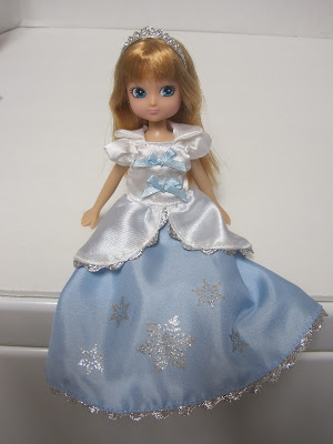 This is "Snow Queen Lottie". She comes in a beautifully detailed box that brings to mind "The Lion, the Witch, and the Wardrobe" from The Chronicles of Narnia, especially with the lamp post in the corner. ;)